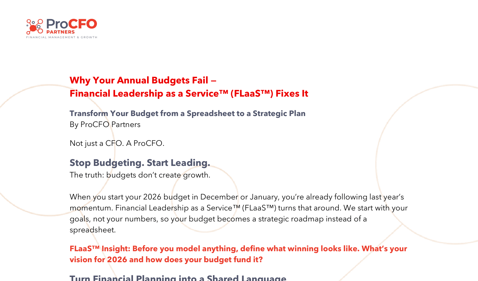 Why Annual Budget Fails – ProCFO Partners Best Practices